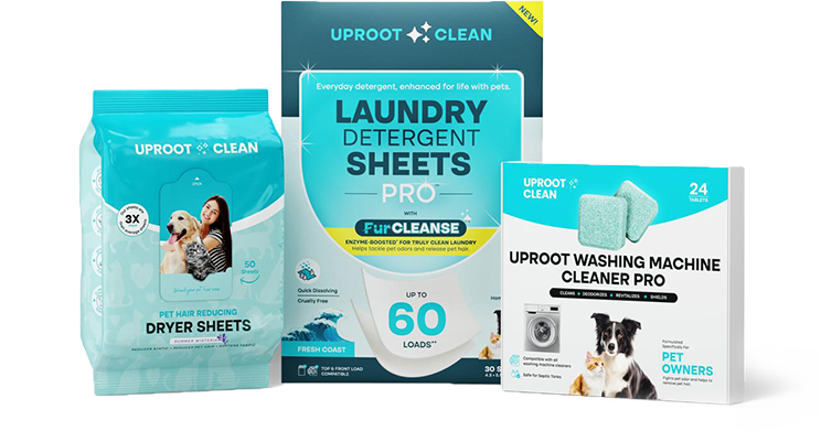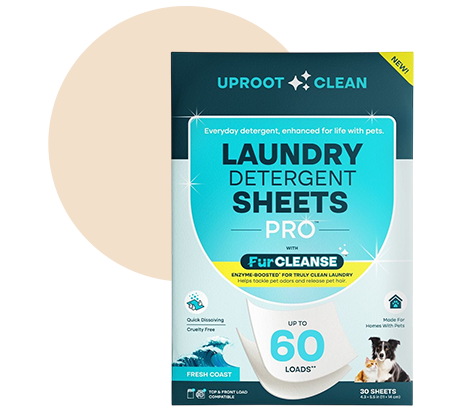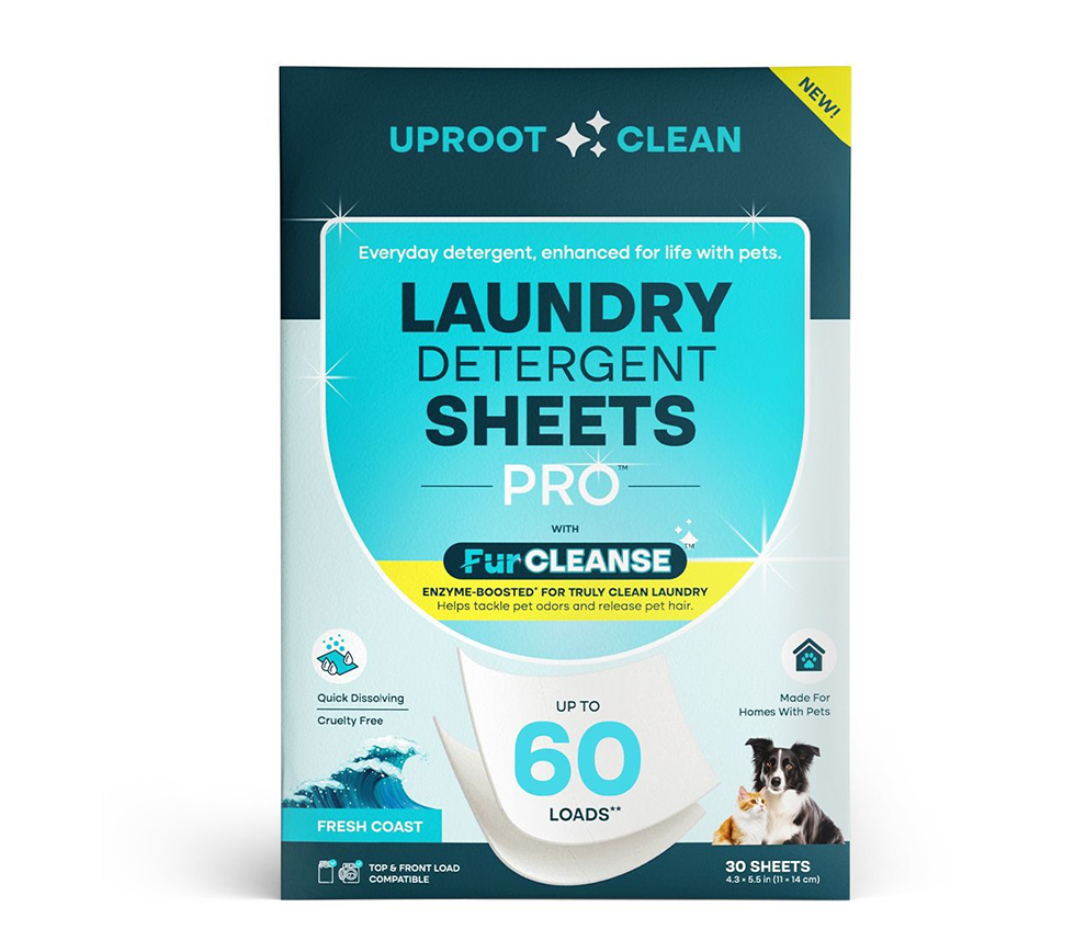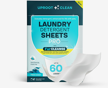 Uproot Laundry Detergent Sheets dissolve pet odor and hair during the cycle so it goes down the drain, not back onto your clothes.